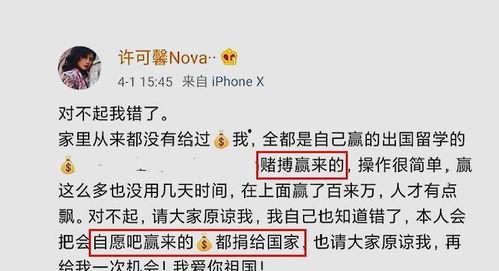 有网友指出,许可馨的回应充满了矛盾和漏洞。一方面,她承认自己的言论不当,另一方面,她又试图为自己辩解。这种自食恶果的行为,无疑让她的形象更加不堪。